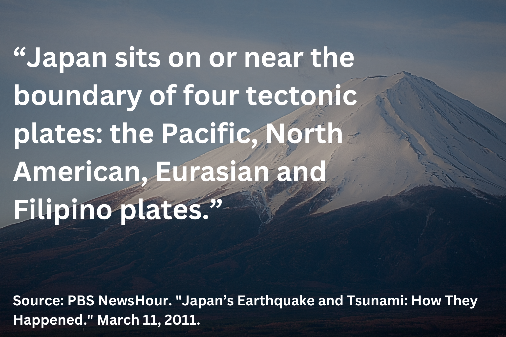 PBS NewsHour. "Japan’s Earthquake and Tsunami: How They Happened." March 11, 2011. Accessed January 9, 2024. https://www.pbs.org/newshour/science/japans-earthquake-and-tsunami-how-they-happened.