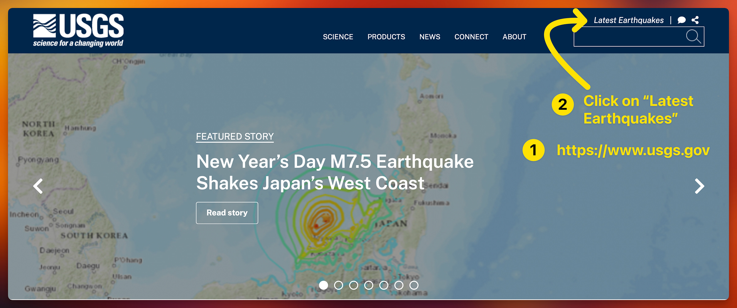 Click on the link “Latest Earthquakes” as shown in the image below: