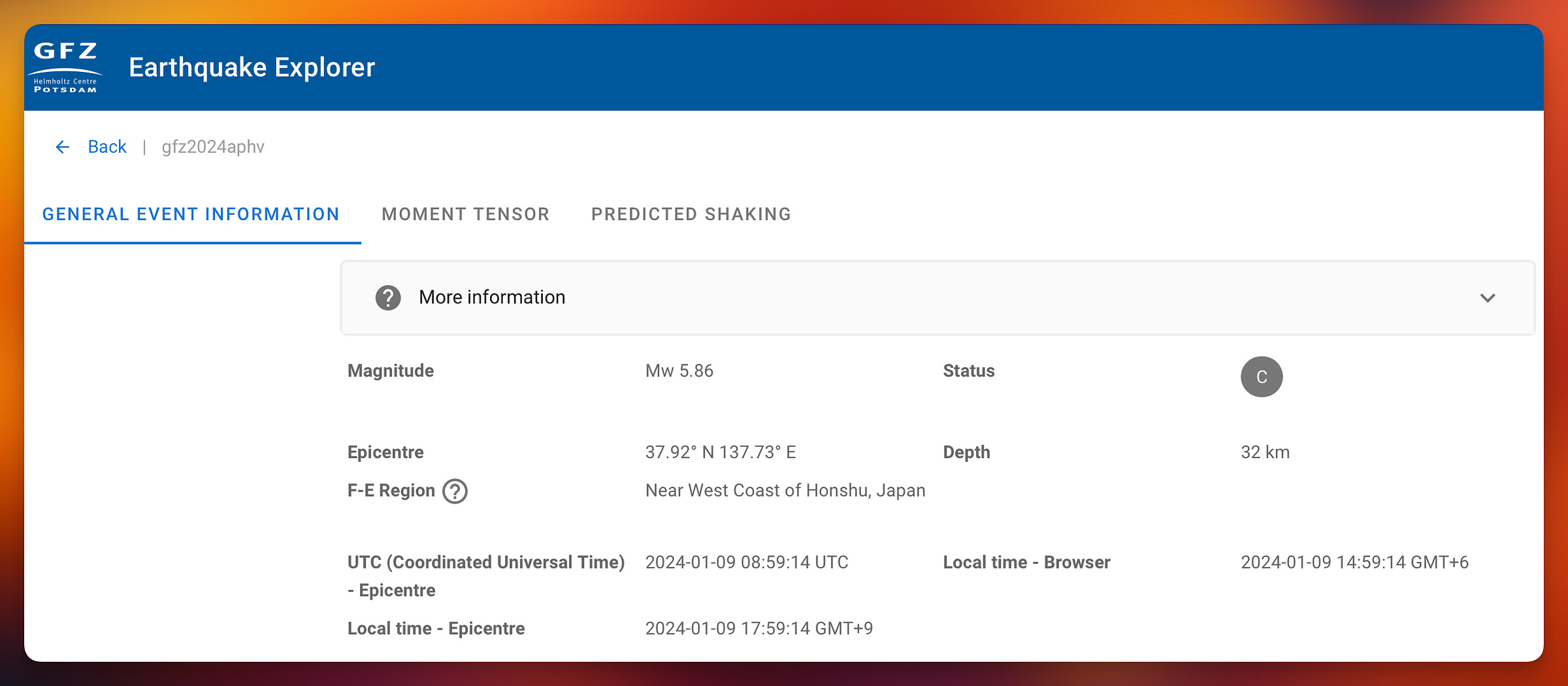 "GFZ Earthquake Explorer." Helmholtz Centre Potsdam GFZ German Research Centre for Geosciences. Accessed January 9, 2024. https://geofon.gfz-potsdam.de/eqexplorer/events/gfz2024aphv/general.